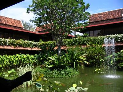 (The central courtyard of the Angkor Village Hotel in Siem
